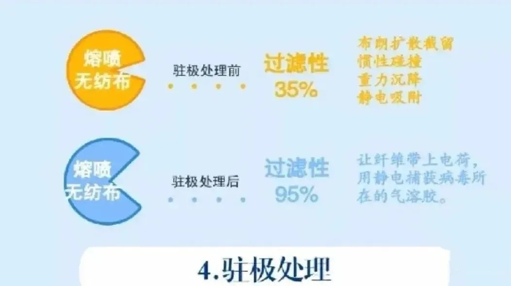 5、一般而言,熔噴布的基礎(chǔ)物理濾效需要達(dá)到40%-60%以上,再通過駐極母粒的加入和駐極處理,可以達(dá)到比較穩(wěn)定的濾效。